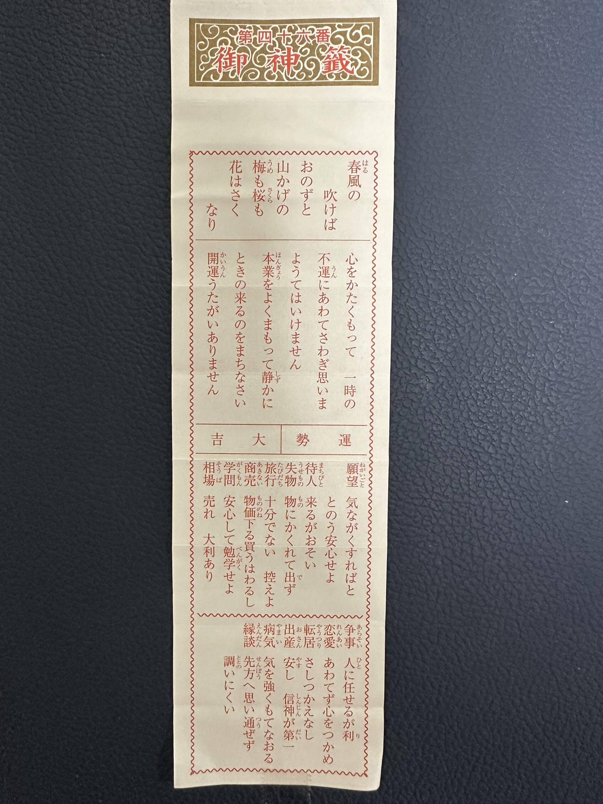 初詣 今年は大吉!(昨年は吉)健康第一そして争いのない平和な年になりますように